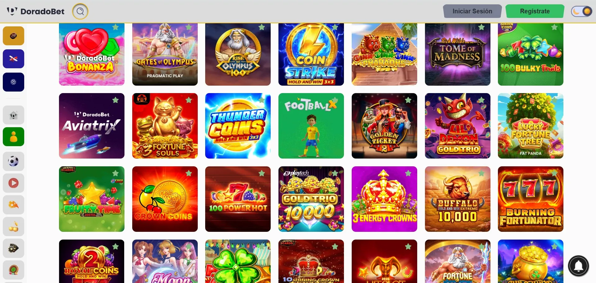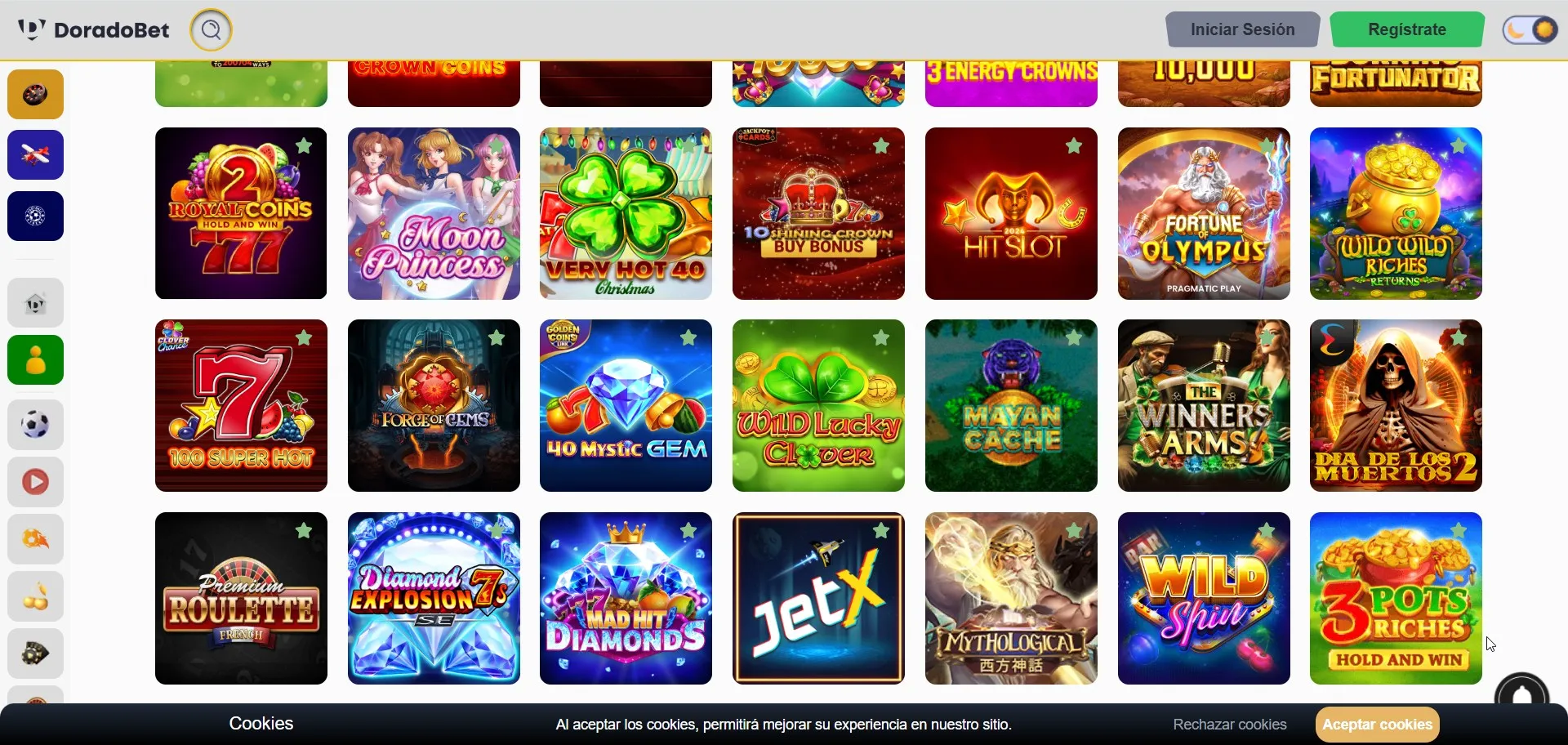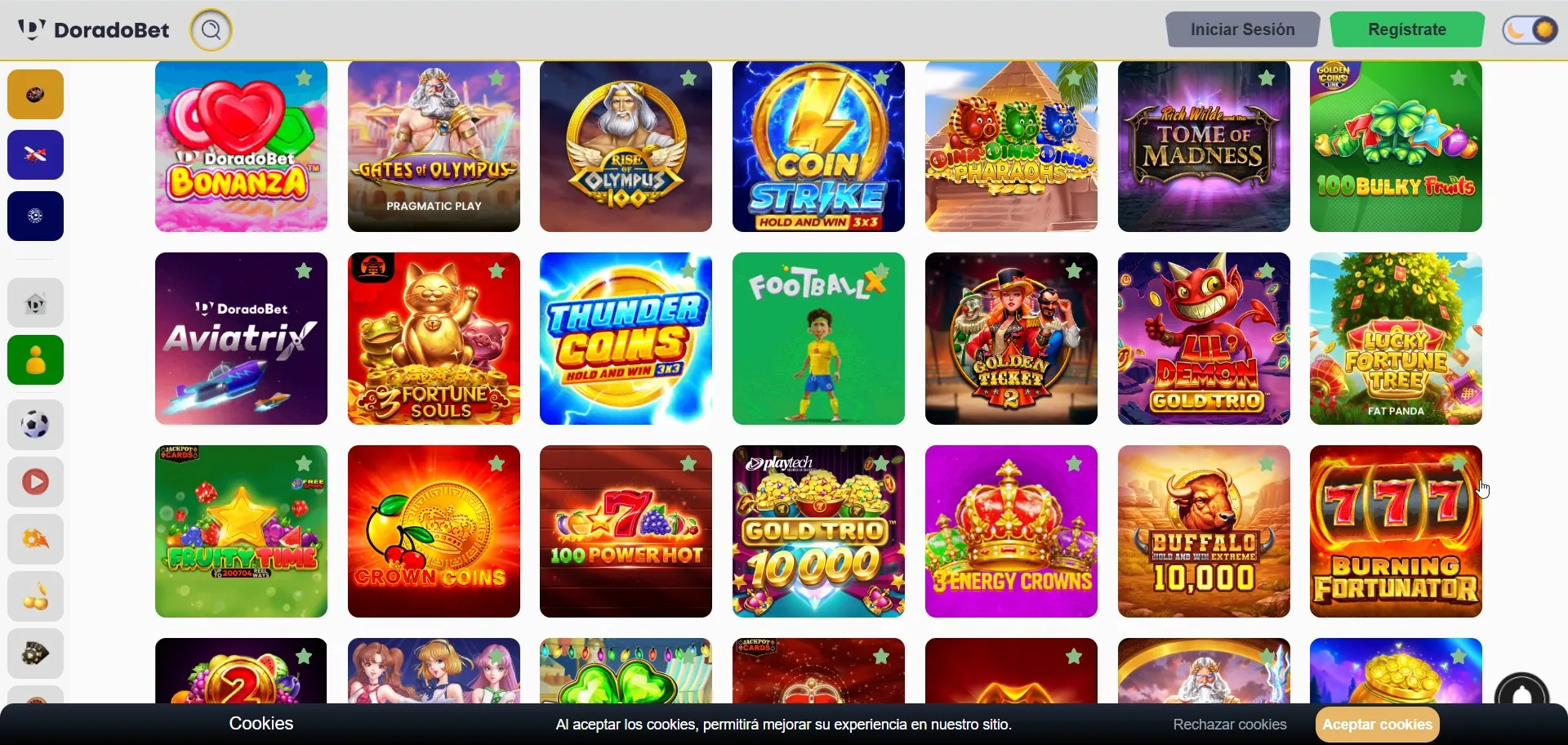 Nuestro equipo probó varias sesiones para evaluar diversidad y accesibilidad. Técnicamente, una buena plataforma debe ofrecer un filtro de proveedores y búsqueda por RTP, volatilidad y líneas de pago; si DoradoBet no lo muestra, esto reduce la transparencia para jugadores avanzados. Recomendamos verificar si cada juego muestra RTP en su información detallada; la ausencia de RTP visible es un punto a favor de la opacidad.